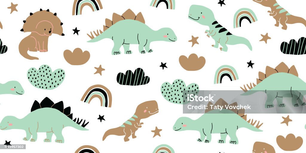 Scandinavian Dino Dinosaur Seamless Pattern Stock Illustration Download Image Now Dinosaur Animal Apatosaur Istock